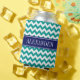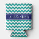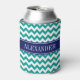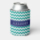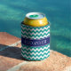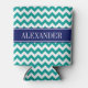 Dark Teal White Chevron Navy Name Monogram Can Cooler