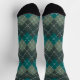 Dark Turquoise and Grey Argyle, White Stitching Socks