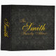 This binder has an air of Victorian elegance about it. A repeating motif in dark greens and black on the covers is reminiscent of Victorian wallpaper. The spine features a black leather printed pattern. The text on the front cover and the spine are easily customized or removed.