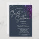 Dark Violet Glitter Drips, Stars Blue Sweet 16 Invitation