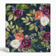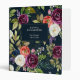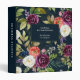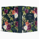 This beautiful and trendy binder features a boho pattern full of watercolor flowers in shades of white, orange coral, and purple on a dark background.