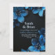 Dark wedding invitation card glitter blue flowers