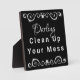 Darling Clean Up Your Mess Sign. Part of the House Keeping Collection by Kenique. You can personalize it with your own message. By Kenique products are featured on McCalla Coulture at mccallacoulture.com/by-kenique.