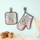Darling Pink Crown Floral Owl Oven Mitt & Pot Holder Set