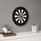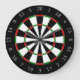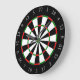 Round wall clock with an authentic regulation dartboard design in black, red ,green and white.