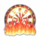 Flames positioned in front of a dartboard, giving the impression that fire is involved in the game. This fiery element adds excitement and intensity to the overall aesthetic. The dartboard itself serves as the focal point, while the flames serve as a visually arresting backdrop.