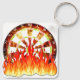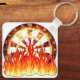 Darts, fire in the game on the dart board keychain