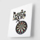 Pictured is a darts logo made from a dartboard image, and a dartboard with a dart in the bullseye