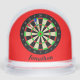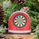 Fun darts player snow globe award with a dartboard and your name on the front. The back has a pattern of colourful darts.