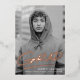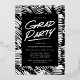 Modern graduation party invitation featuring the graduate's vertical photo with "Grad" in real rose gold foil handwritten lettering with a dash below. Personalize the trendy photo graduation party invite by adding the graduate's name and school name. The rose gold foil graduation party invitation reverses to display your party details with a black and white dashed brushstroke background.