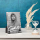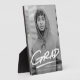Celebrate your graduate's achievement with a personalized graduation photo keepsake. The plaque features the graduate's vertical photo with "Grad" in white handwritten lettering with a dash below. Personalize the graduation photo plaque by adding the graduate's name, school, and graduation year.