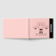 A guestbook for celebrating the Chinese New Year. A big pink pig face wearing a formal bow tie. Lifted up by his black cloven hooves and peering over a at you. Cute and whimsical drawing. Set on a pink background with faded hearts. Ready to celebrate the year of the pig 2019.