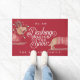Celebrate the magical and festive holiday season with our fun dashing through the snow doormat. Our festive holiday design features our hand-drawn dachshund dog wearing a festive red cozy knitted sweater. The dachshund dog is wearing antlers with a string of Christmas lights wrapped around the dog and in the dog's mouth. "Dashing Through The Snow" is displayed in a fun script. Personalize with name and house number. All illustrations are hand-drawn original artwork by Moodthology.