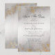 Moderne Luxe Paillettes Dorées Gris Brume Save The Date. Élégante collection de mariage contemporaine sophistiquée réalisée dans une brume de marbre gris ombré à l'aquarelle avec des paillettes dorées luxueuses. Ce design de mariage éthéré et rêveur personnalisé peut être facilement personnalisé avec vos propres détails de mariage.