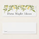 Have your bridal shower guests write down their favourite date night idea on this simple date night card featuring watercolor lemon branches and greenery.