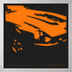 Original one-colour drawing of a Datsun 240Z Detail in orange on a charcoal-black background.