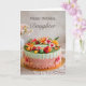 This vibrant birthday card for a daughter showcases a beautifully decorated tropical cake adorned with bright hibiscus flowers, lush green leaves, and colorful fruit accents. The soft pastel base and elegant piping details create a warm, cheerful feel—perfect for celebrating a daughter’s special day with a touch of island-inspired beauty.