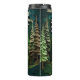 This inspiring graphic proudly declares "Daughter Of The King" in elegant, contrasting fonts, with "King" rendered in a radiant golden-yellow. The text is beautifully set against a serene, stylized night landscape featuring layered mountains, abundant evergreen trees, and a luminous moon. Framed by a dashed green border, it symbolizes spiritual identity and belonging.