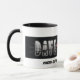 WHITE MUG WITH BLACK HANDLE AND RIM. DAVE EVANS LOGO WITH KING OF ALL BADASSES UNDERNEATH.