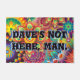 Dave's Not Here, Man. Funny 70s Saying personalized door mat features bursts of brightly coloured psychedelic shapes with a multicolored multilayered text that says, "Dave's not here, Man." Those who remember the Cheech and Chong bit are sure to smile at this. Others will scratch their heads. Either way, it's a great conversation starter.