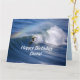 A California surfer rides a wave as a rainbow shoots overhead. Awesome! You can easily change the text and name on the front and inside of the card.