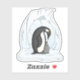 Glaciers and ice surround Annie the paisley emperor penguin as she cuddles up with her dad, Davin, to stay warm in the cold Antarctic snow and ice. This sweet and chilly scene is a great way to bring some cute penguins into your life.