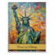 Elevate your writing with this artist-grade notebook, featuring a breathtaking Van Gogh-style Statue of Liberty at sunrise on the cover. The design blends impressionist brushstrokes in radiant golds, serene lavenders, and deep ocean blues, symbolizing hope and freedom. Personalize the front with your name, a quote (e.g., “Ideas for Change”), or an inspirational phrase in your choice of font/colour.