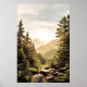 A serene landscape where the sunrise bathes mountains and forests in golden light. This artwork evokes peace, a deep connection with nature, and renewal — perfect to turn any space into a calming sanctuary.