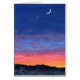 day2night - colourful sunset behind a mountain ridge transitions into a moonlit sky. From an acrylic painting by M Rogers. Available as 4" note cards, 5x7 greeting cards and 8.5x11 giant cards.