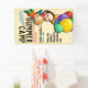 Promote your summer day camp, arts & craft lessons, child care or whatever (!?) with this absolutely adorable fully customizable banner. Features a hand-painted young boy and girl happily floated up on a colourful group of balloons. Designed and professionally illustrated by the artist of Character&Co, well-known specialty sign, mural and menu board company on the East Coast. All text and background colour can be personalized to suit. Also applicable for a party, preschool, gym child care, etc.