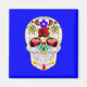 This intriguing Day of the Dead style design features a sugar skull with a rose, lilies, and red diamonds, with a sort of a hippie or boho look. The skull is set against a bright blue background. If you or your recipient likes skulls or Día de Muertos themes, this might be the right pick for them.