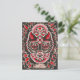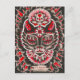 A dynamic black and red cat design in the style of the Mexican celebration of Day of the Dead.