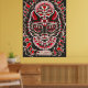 Striking black and red cat design in the tradition of Dia De Los Muertos.