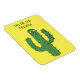 This awesome magnet features a digital art image of a cute green cactus covered in dark green spiky prickles. The cactus has goofy eyes and a smile on its face. There is custom text so you can personalize this magnet with your own message.