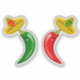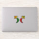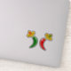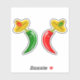 This awesome shaped sticker sheet features a pair of chilis, a red chili and a green chili. They both have black eyes and pink mouths. Each Chili is wearing a sombrero hat that has a skull of the opposite colour to the chili on it in celebration of the Mexican Day of the Dead festival, Dia De Los Muertos. The sombrero also contains three flowers with alternating red and green petals representing the flag of Mexico.
