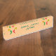 This awesome nameplate for your desk features a pair of chilis, a red chili and a green chili. They both have black eyes and pink mouths. Each Chili is wearing a sombrero hat that has a skull of the opposite colour to the chili on it in celebration of the Mexican Day of the Dead festival, Dia De Los Muertos. The sombrero also contains three flowers with alternating red and green petals representing the flag of Mexico. There is custom text so you can include a name and any message of your choice.