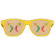 This awesome pair of party shades features a pair of chilis, a red chili and a green chili. They both have black eyes and pink mouths. Each Chili is wearing a sombrero hat that has a skull of the opposite colour to the chili on it in celebration of the Mexican Day of the Dead festival, Dia De Los Muertos. The sombrero also contains three flowers with alternating red and green petals representing the flag of Mexico.