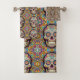 A vibrant and colourful pattern featuring a repeating pattern of sugar skulls adorned with intricate floral details. Perfect for adding a touch of Mexican culture to home decor or apparel.