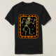 Skeleton puppet for the Mexican Day of the Dead with bright orange lines and confetti.