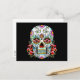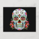 Postcard with an image of a Day of the Dead skull decorated with pink flowers and vines, red roses and a cross with four drops of blood on black. The back is white with an optional description. The Day of the Dead, or All Souls' Day, is celebrated on November 2 in various European and Latin American countries. In Mexico the period of All Souls' Day festivities is held for several days, including All Saints' Day on November 1. See matching label and sticker. See the entire Mexico Postcard collection in the CARDS, POSTCARDS & STICKERS section.
