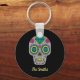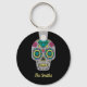 This intriguing Day of the Dead style design features a skull with a blue-green crystal at the top, with roses, hearts, and yellow lightning bolts. The skull is set against a black background for contrast.