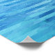 A modern geometric watercolor abstract art print with a blue, aqua and turquoise glitch design.