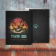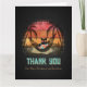 Daydreaming Cool Cat's Tropical Escape Thank You Card: A black cat wearing sunglasses and a Hawaiian shirt, lounging in a hammock between two palm trees, with a retro sunset in the background.