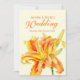 Aquarelle détaillée d'une magnifique fleur d'Hemerocallis sur ce joli faire-part de mariage fleuri orange et jaune. Capturé pour la journée car ces fleurs ont tendance à dernier pas plus de 24 heures, donc une fleur très appropriée pour votre unique jour de mariage très spécial. Faire-part de mariage orange Hemerocallis, design adapté de la peinture aquarelle originale de Sarah Trett.