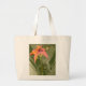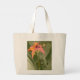 Haul your belongings in style with this daylily tote. This 100% cotton bag is gusseted on the bottom to make it easier to carry those larger items.