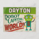 A funny Dayton Ohio vintage travel postcard featuring a friendly robot with fun retro style text that says, "Dayton, Robot Capital of the world!"