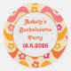 This is custom groovy retro floral bachelorette party custom sticker with very cute retro flowers on abstract groovy waves in pink , orange ,yellow and purple. you can change it and make it yours by using personalize template.