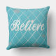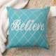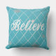 Adorn your home this holiday season with our gorgeous and striking Azul Blue and Silver "Believe" Decorative Throw Pillow. This design features beautiful script in silver with the festive word "Believe" complimented by dazzling snow flake designs through out. The backdrop is the most striking and soft blue etched with a silvery white diamond shaped chequered design. We know you'll want the entire collection!
