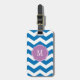 Dazzling Blue & White Chevron Monogram Luggage Tag