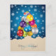 Send your warm wishes to your family and friends with this beautiful merry Christmas postcard featuring red, blue, pink, purple,silver and golden Christmas balls on blue background. Falling sparkling snow gives it a dazzling beauty.